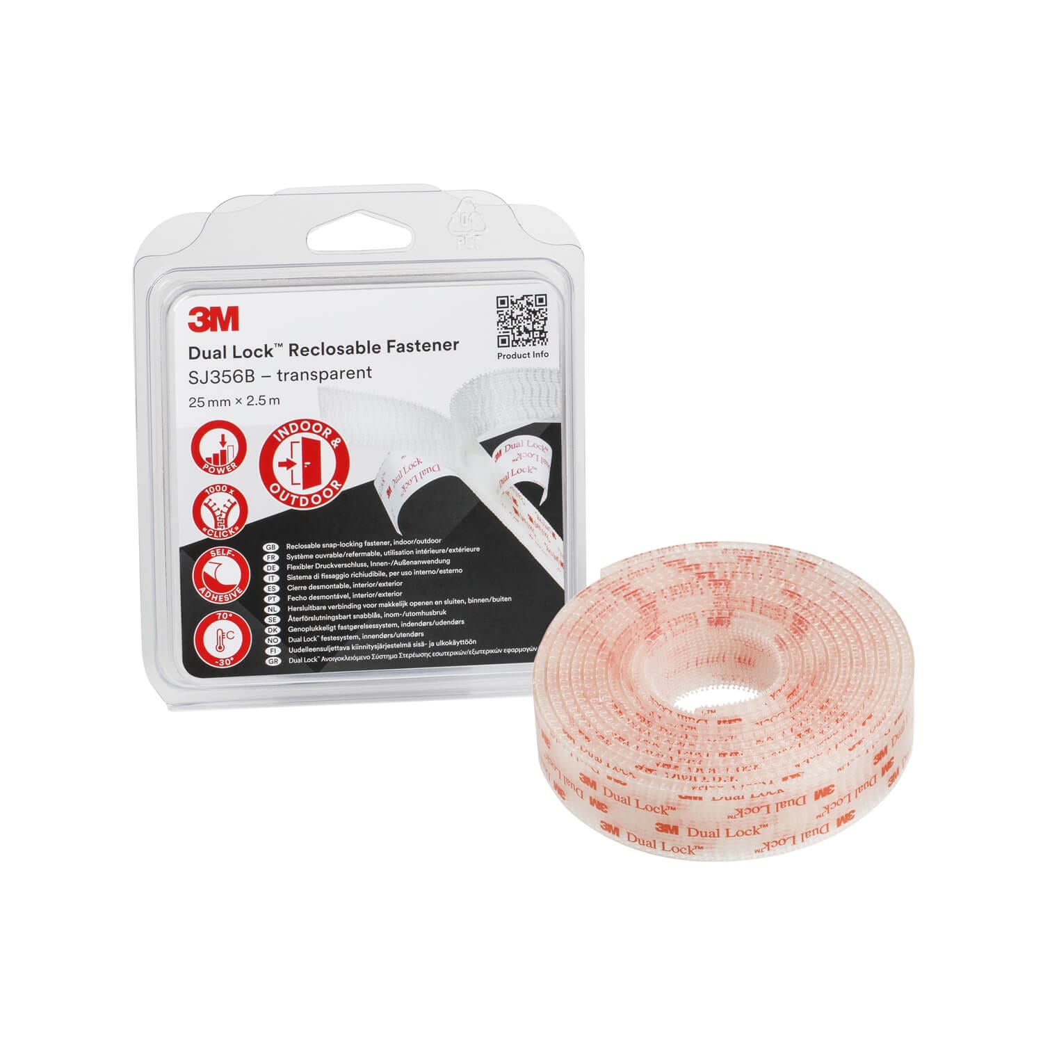 3M SJ3560 Dual Lock Şeffaf, 25 mm x 2.5 m, 5.7 mm