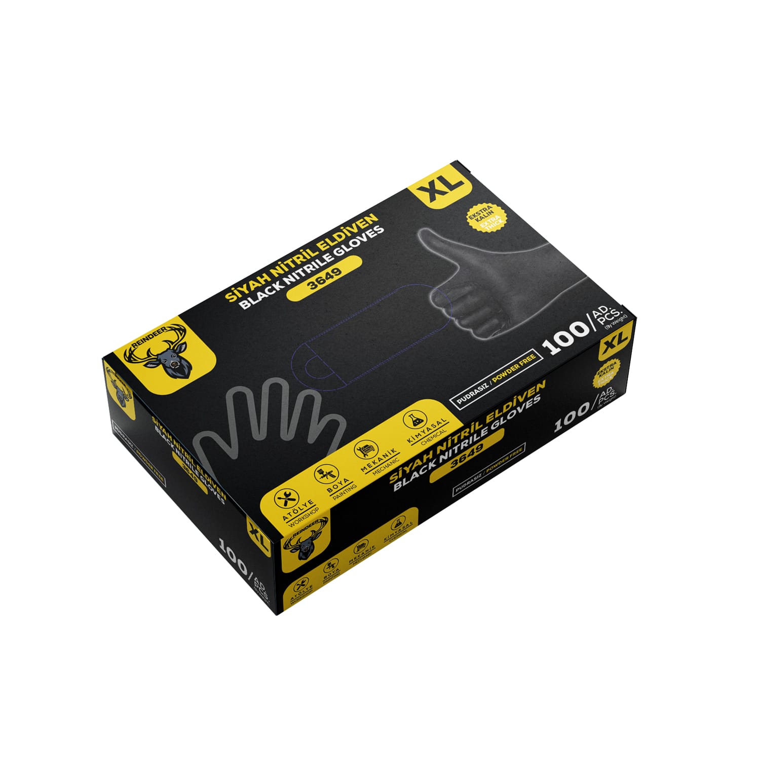 ELDİVEN SİYAH NİTRİL (REINDEER) (3649) 100 pcs ( XL )