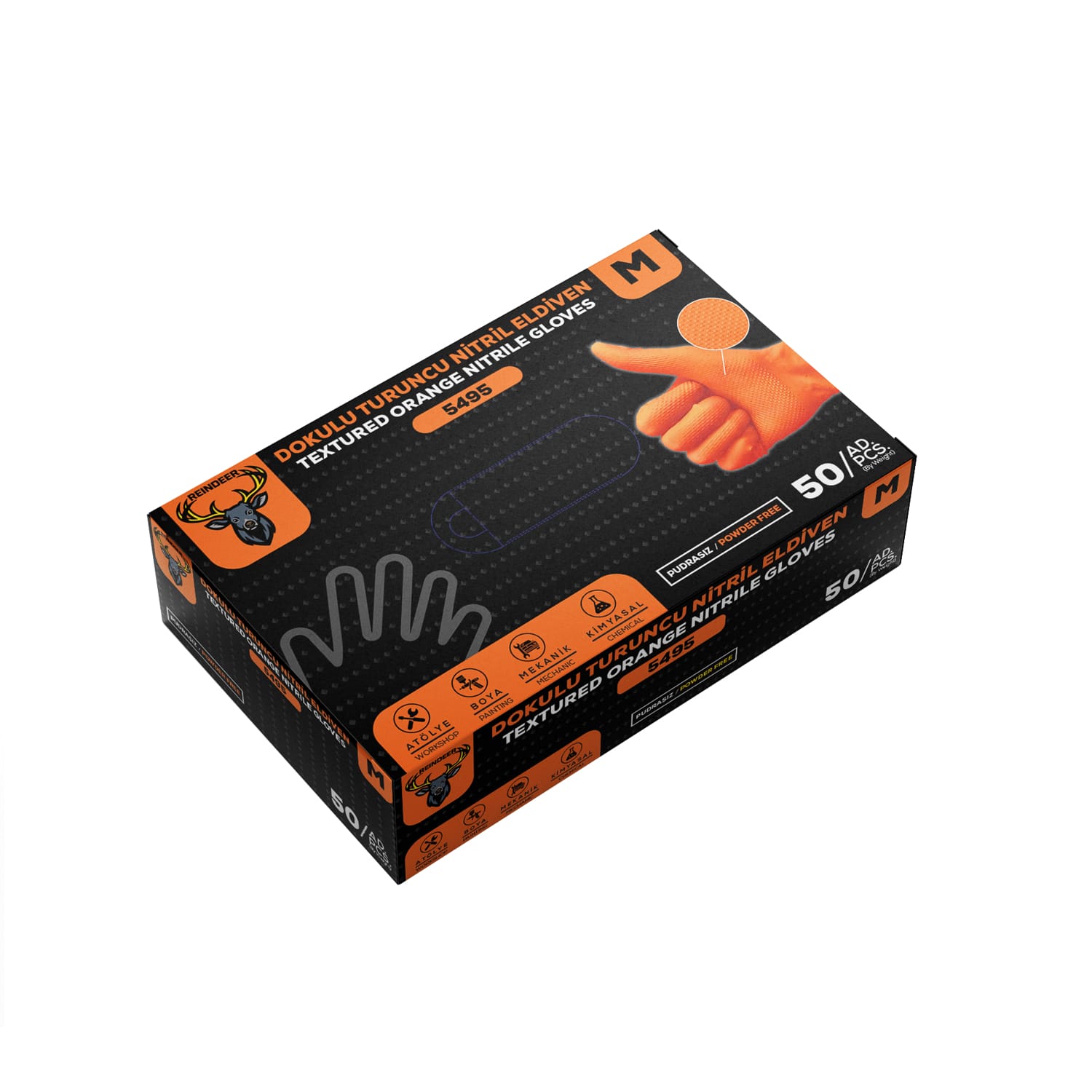 ELDİVEN ORANGE NİTRİL (Dokulu)(REINDEER) (5495) 50 pcs ( M )