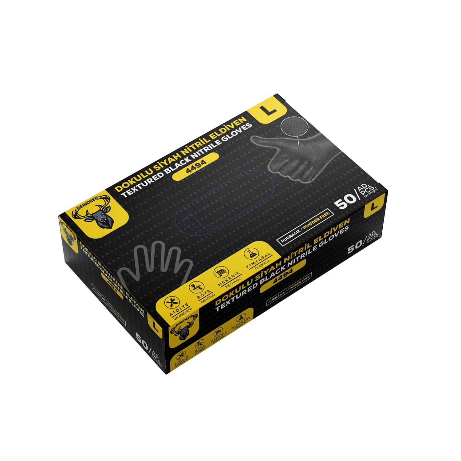 ELDİVEN SİYAH NİTRİL (Dokulu)(REINDEER) (4494) 50 pcs ( L )